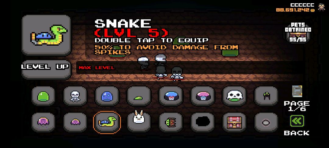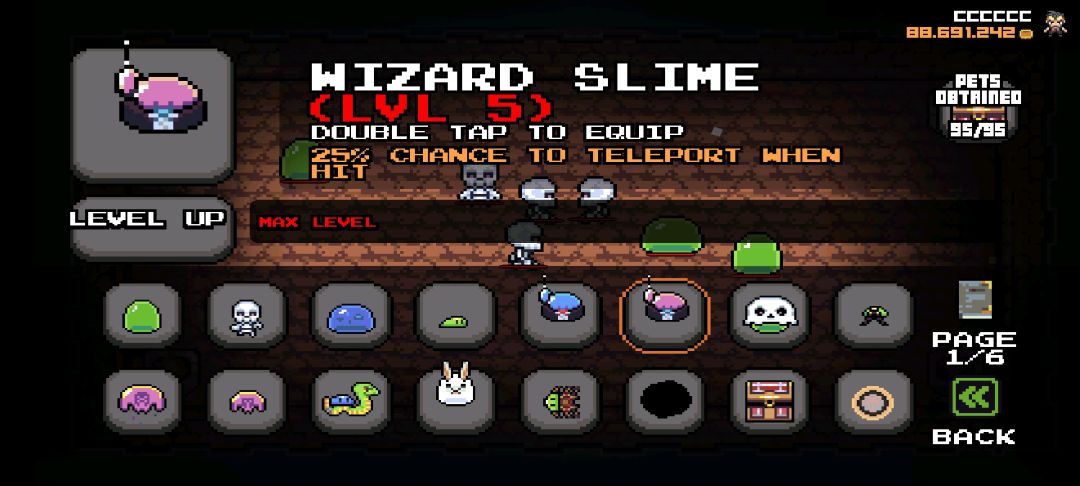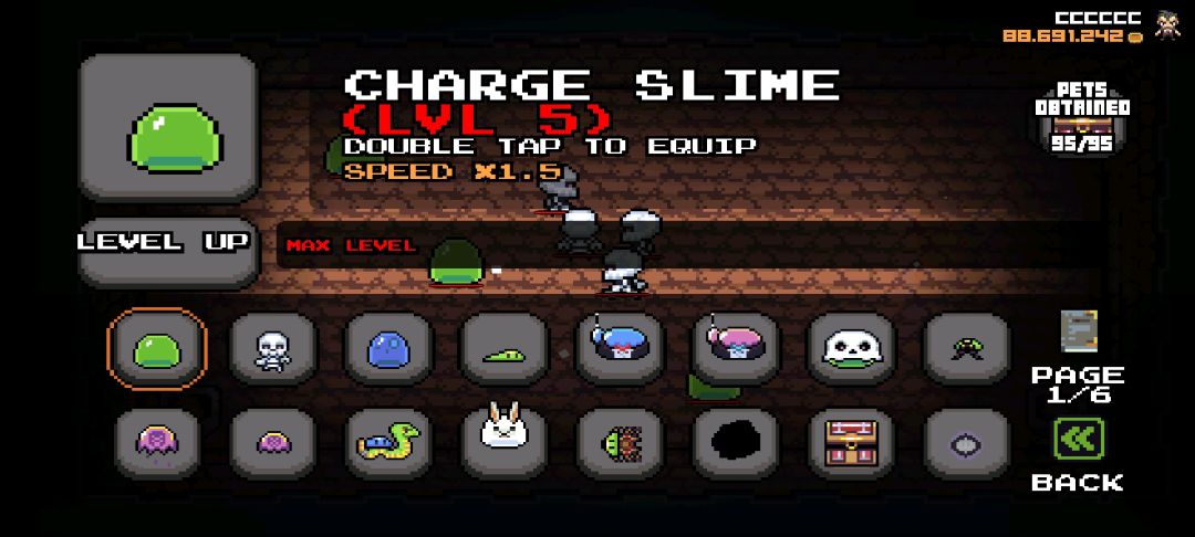史莱姆王之塔中的怪物种类较多,一共有95种,不同的小怪和boss招式等各异,与之对应的宠物也有不同的技能,解锁宠物技能需要玩家在游戏中打败相应的小怪10次,并花费金币将该宠物升到lv5,不同的宠物升级花费金币数一样,lv1是100金币,lv2是200金币……以此类推,lv5是500金币,每解锁一个宠物技能则花费1500金币,不想肝的可以去RuanTianKong,到up资源里去搜史莱姆王之塔无限金币,但进度得自己打