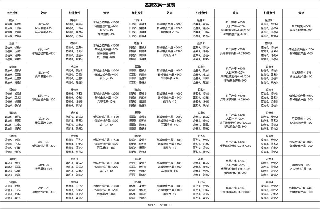 创作名篇后,我们可以供奉名篇获得对应的效果,名篇拥有的相性越高,则供奉获得的收益就越高,具体可见下表: