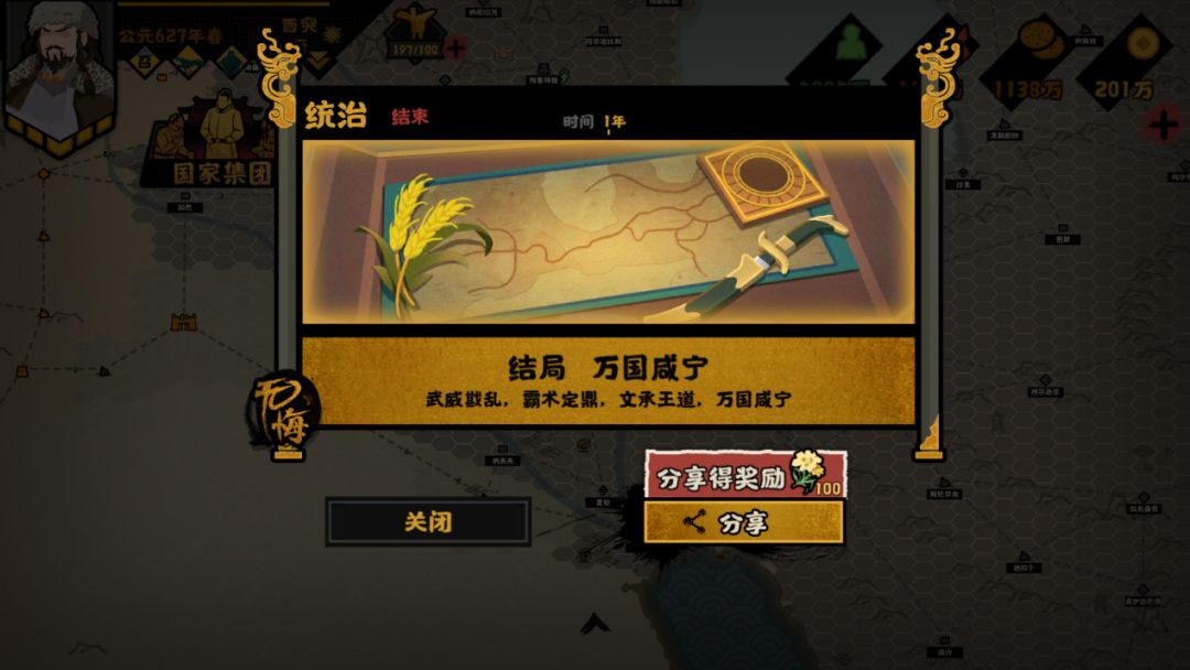 西突厥达成【万国咸宁】高级结局后,也可同步解锁【草原霸主】普通结局。