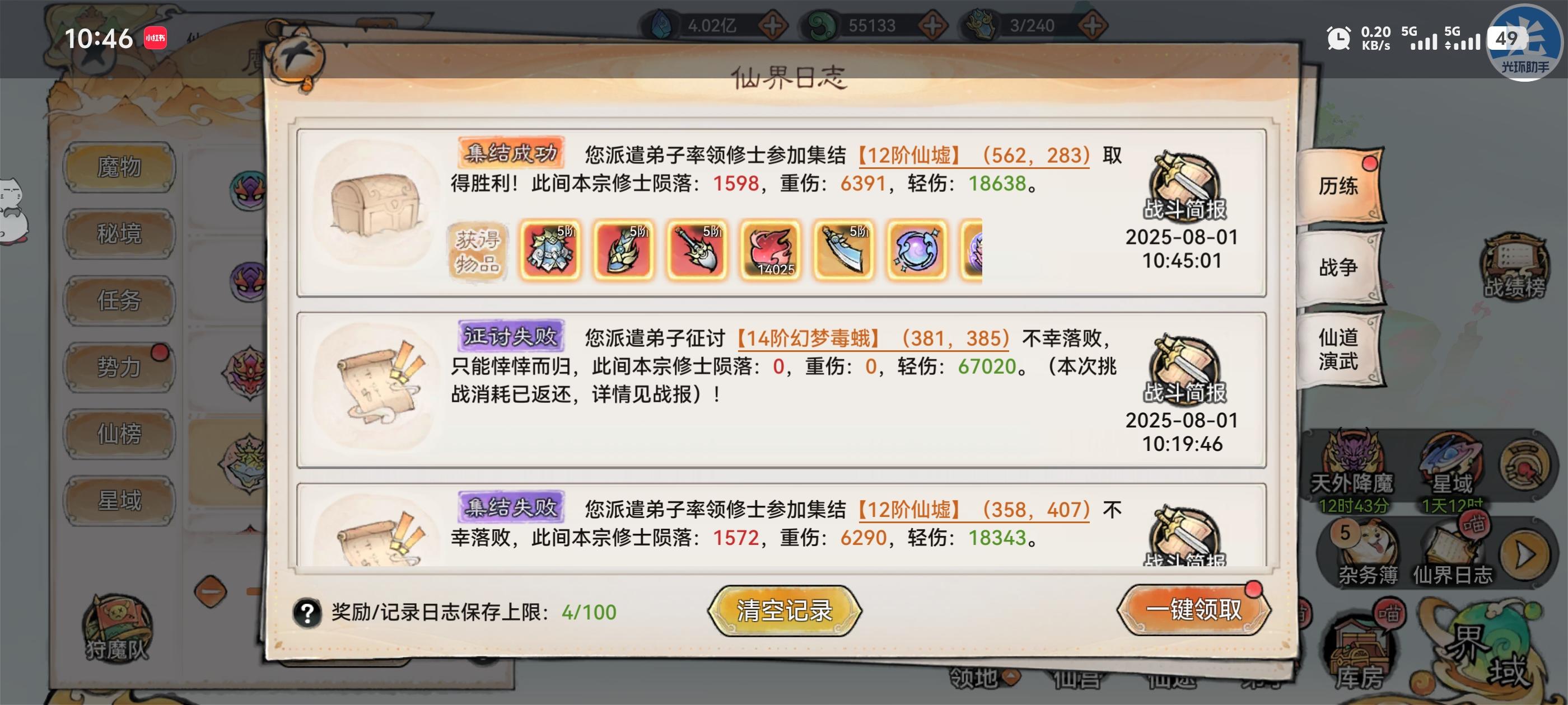 拿下我们仙界12阶首杀,实际上没那么稳,想着要不要弄下法宝,但魔界又马上要出了,到时候搞几个金叶子炼个法宝,然后先炼化水竹子先用着,以后再炼化重置,打仙墟就是巨大提升,所以暂时不改了。