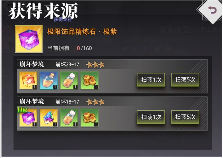 装备升级建议一件一件的升满再换第二个 比如升级棒棒糖突破70再继续突破80 不要中途换装备刷石头。或者直接全部扫荡【突破80】的石头,规划好要拉的装备数量,比如3件SSR武器,那就是360个石头,刷到360停手再去看70的石头缺多少再刷这个,虽然进度慢一点,但是可以合理利用材料。#梦的第七章夏日创作