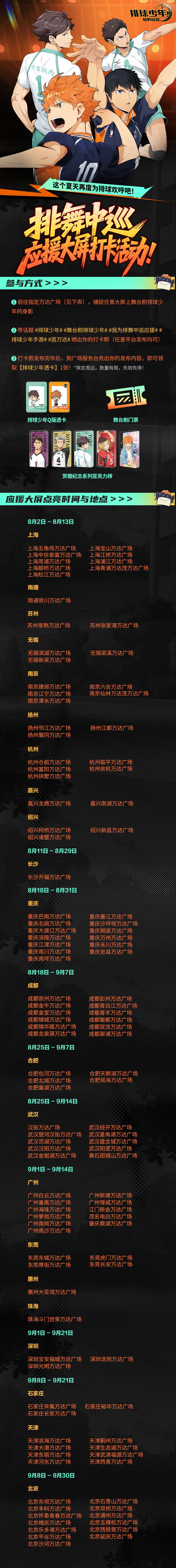 喜欢小排球的你看过来!舞台剧排球少年+万达广场+排球少年手游为排粉送上好礼,我们即将联合点亮全国300家万达广场的大屏!