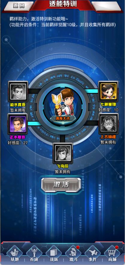 特训需要的羁绊:迫水真吾、正木敬吾、七懒丽娜、上古幽魂、飞鸟信