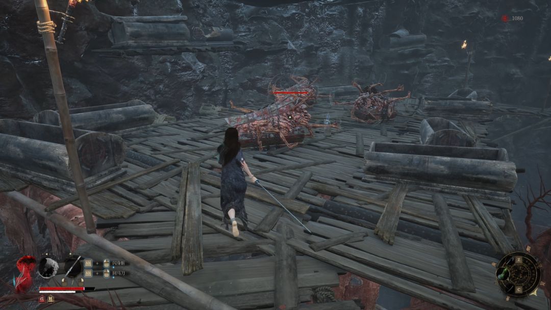 继续向前三名敌人较为难缠可以考虑逐个击破,体力攒满后冲上去快速杀死一名敌人后立即后撤,这种敌人会释放产生异常状态毒雾,关注自己的状态积累。