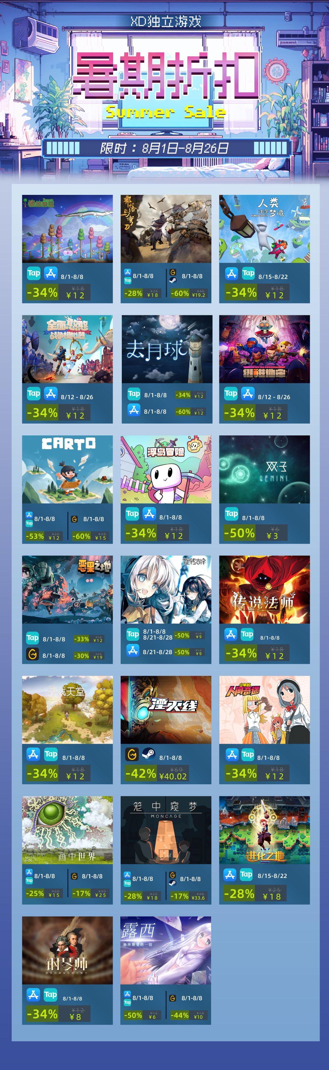 关于其他独立游戏本次的折扣信息,各位也可以在帖子下方的长图中详细了解。