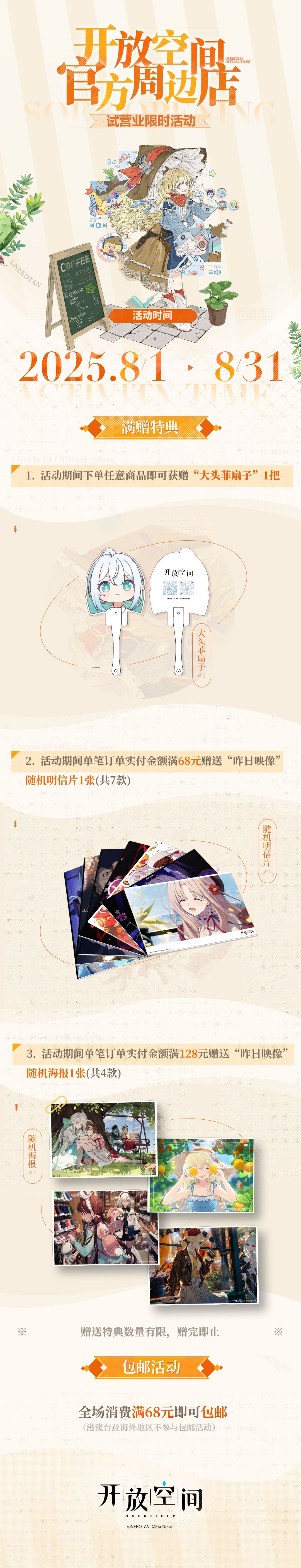 2.活动期间单笔订单实付金额满68元赠送“昨日映像”随机明信片1张(共7款)。
