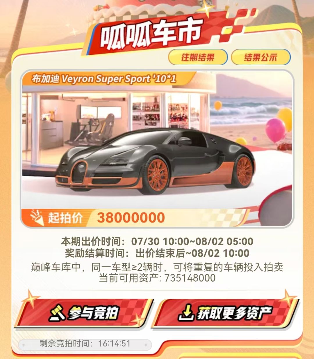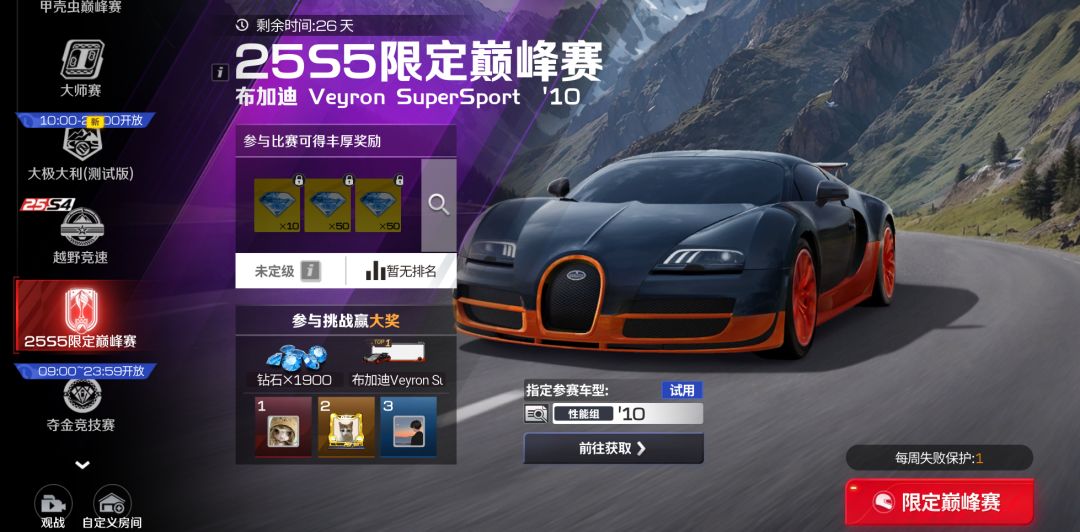 参与玩法就有机会获得钻石、限时抽奖券、“亿万富翁”头像框、更有机会将布加迪 Veyron Super Sport '10直接打包塞进你车库~