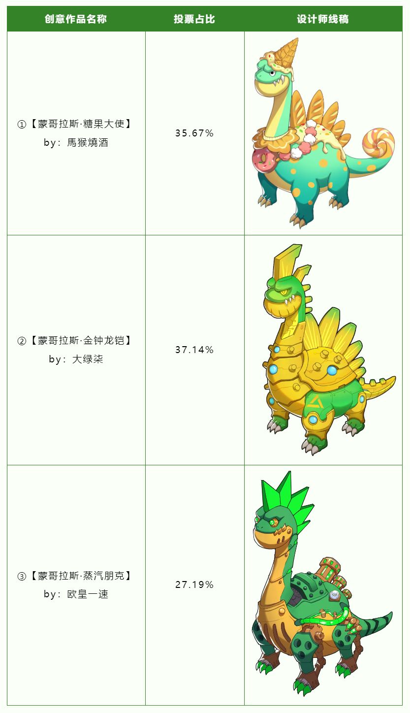 截至2025年7月27日23:59,蒙哥拉斯皮肤创意手绘稿投票在游戏内已有最终结果!