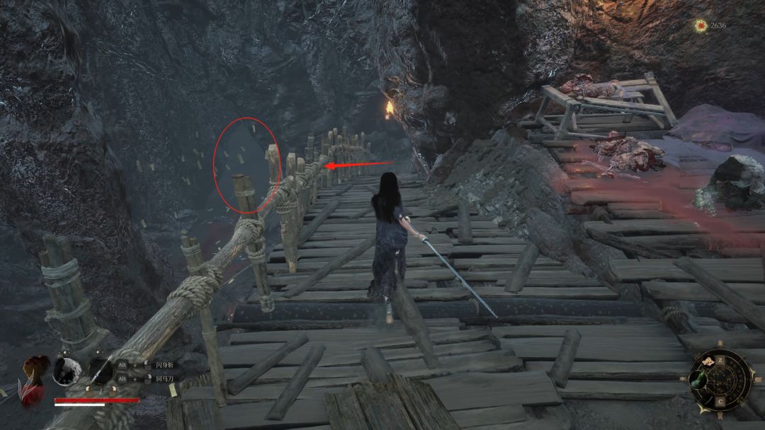 突刺下劈:这招比较常见,我们可以躲在柱子后面,他攻击到柱子会陷入很大的僵直并受到伤害