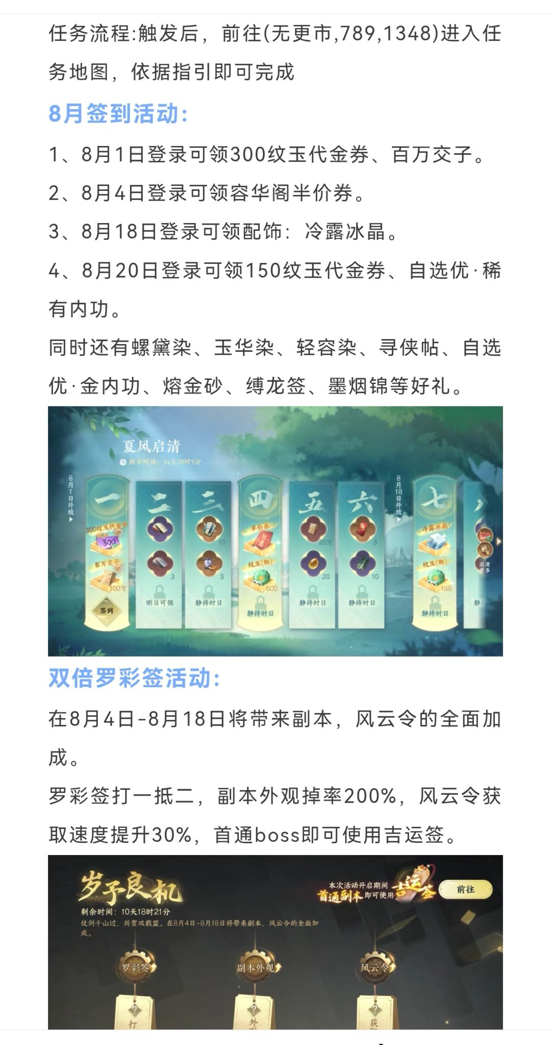 逆水寒8月代金券合集,双倍罗彩签活动,