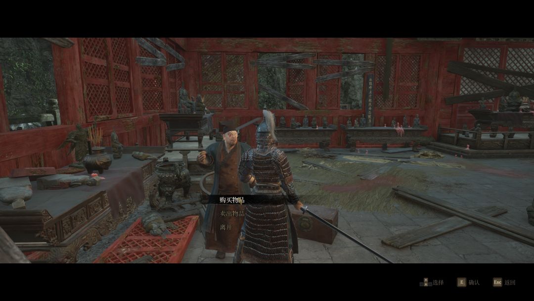 在游戏中将会出现两位商人,他们会在游戏的各个节点出现为我们提供补给,随着剧情的推进他们出现的位置也会随之变化。第一位商人是吴刚,他主要出售各类消耗品及部分先神之言和法术。在流程中将捡到的非boss信物交给他,商店内便会新增对应的物品