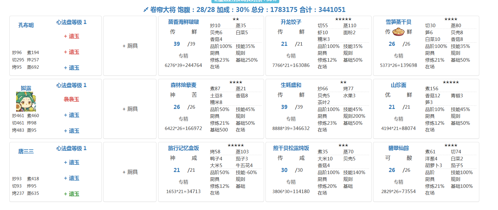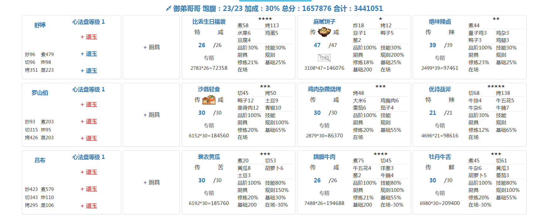 ,如果二郎神装了高售价厨具,那过线更轻松,其他人厨具根据自身情况加啥都行。📌菜谱优化