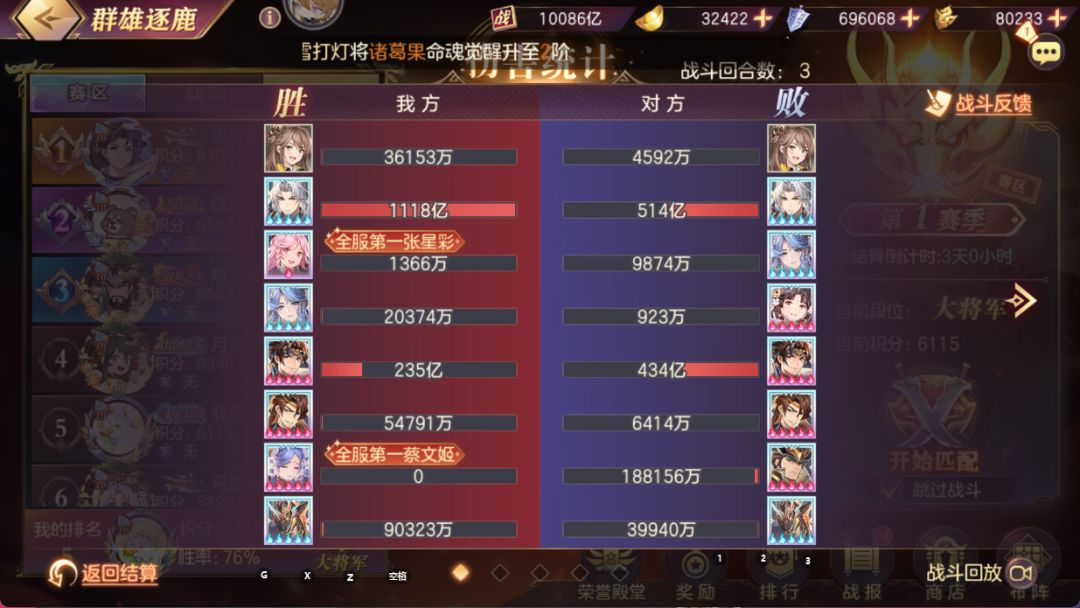 上面的战报只是打出来的个例,理论上最优是加上命魂吕布命魂诸葛果然后拼战力