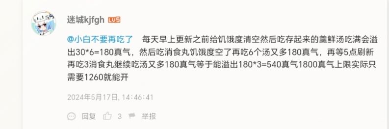 2、消食丸:必买,服用后饱食度下降两点。 (※每日限服三颗),这个东西可以配合临时提升真气上限的,12碗汤*30+1440,可以达到1800真气上限点经脉;聚元丹都不需要