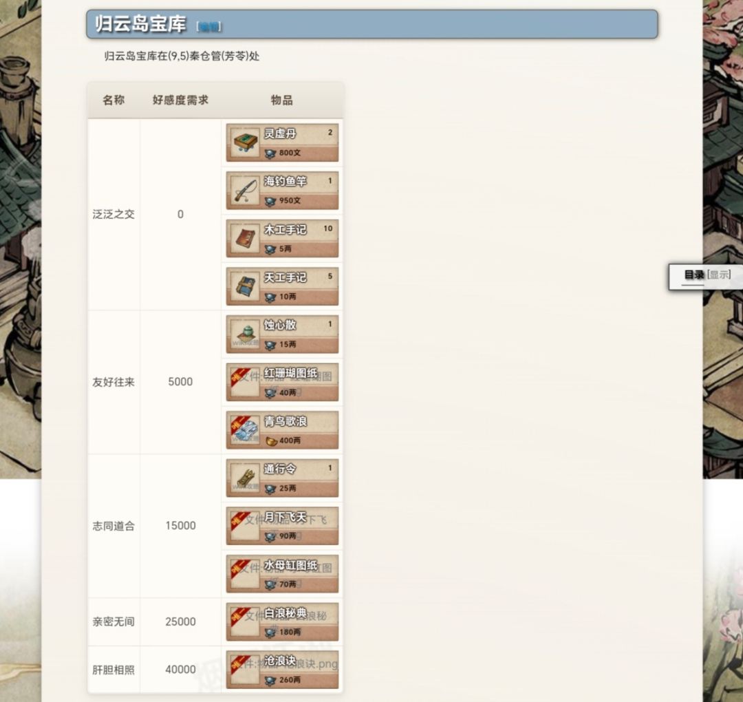 4、通行令(25两):通行令交给(11.17)弟子可以前往岱云岛修炼,一日一次,每次选取一个角色提升5点命中
