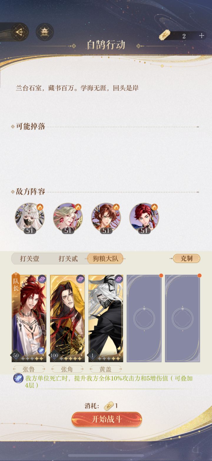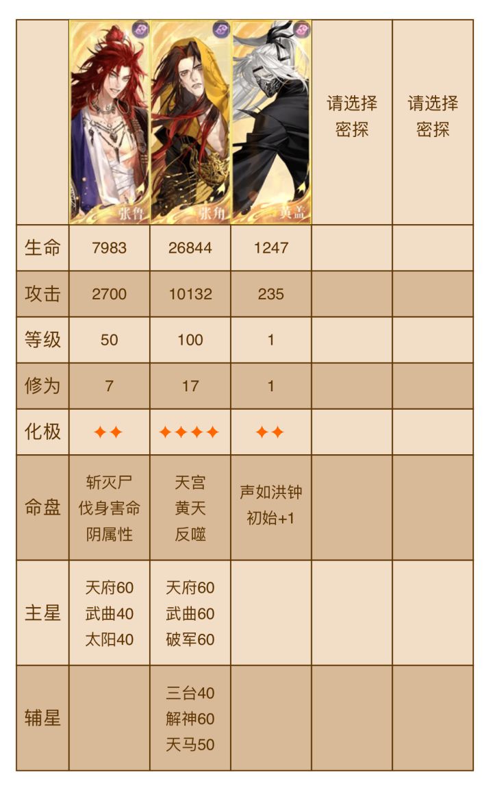 张鲁和黄盖练度高时,角叔练度可降(指攻击力可降,命盘降不了)