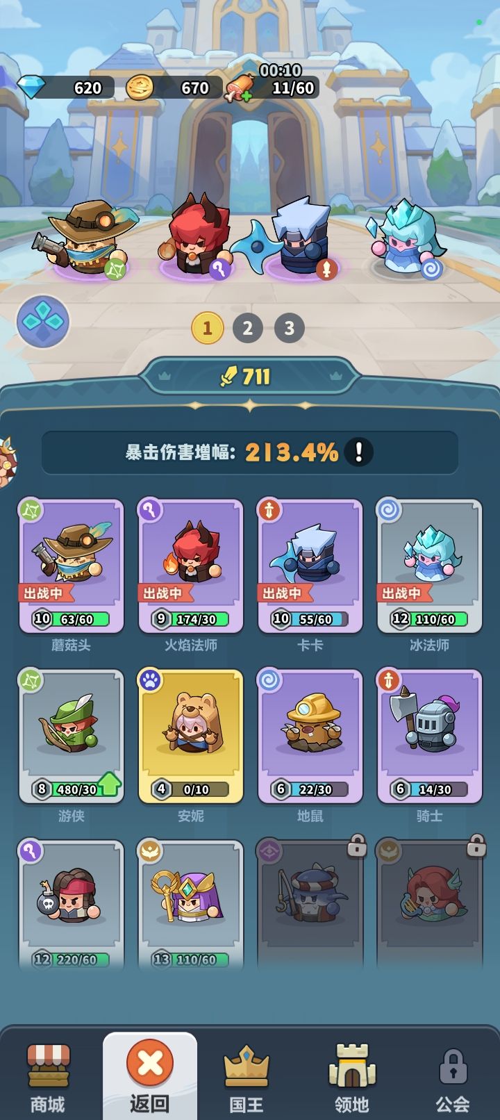 2. **生存保障**:石像守卫的高护甲和嘲讽保护后排,治愈精灵的群体治疗弥补低练度缺陷。