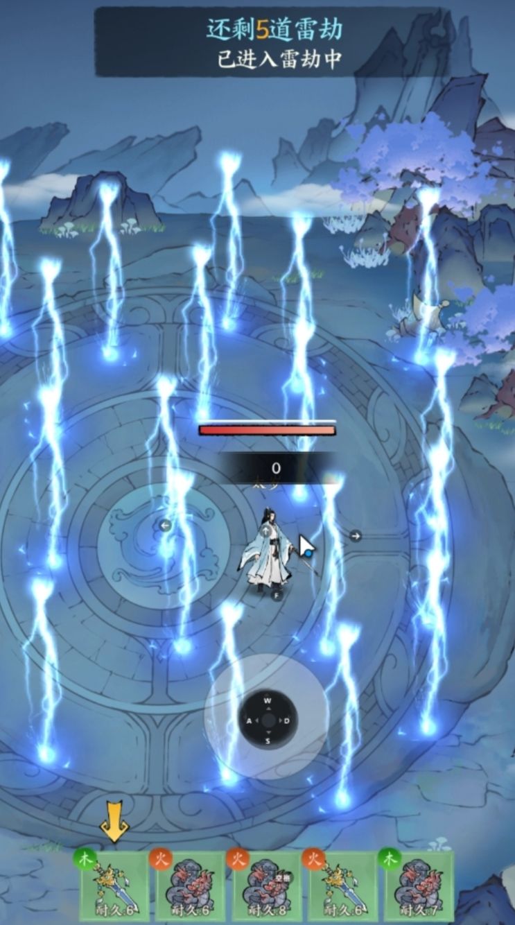 渡劫时的雷劫分为大雷劫和小雷劫,小雷劫可以靠走位闪避,大雷劫可以长按闪避按钮,在大雷劫落下的瞬间松手进行闪避(渡劫全闪避会有成就奖励)