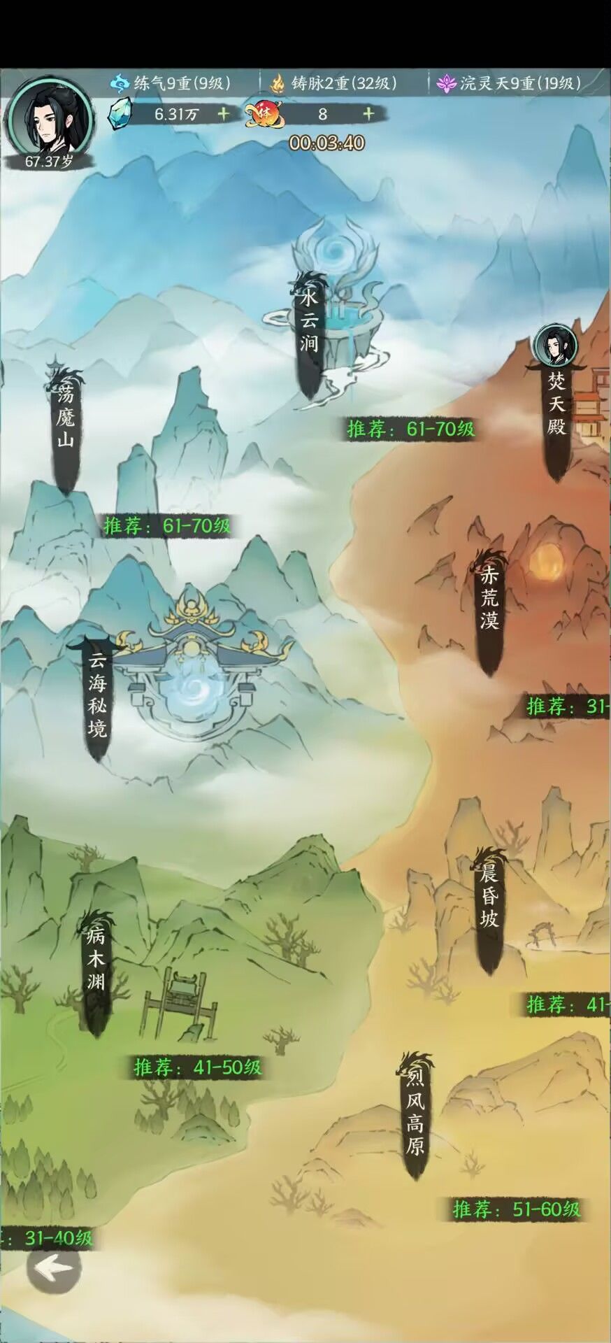 秘境地图:分为传承秘境和藏宝秘境,传承秘境主要掉落功法一类的物品,藏宝秘境则是材料