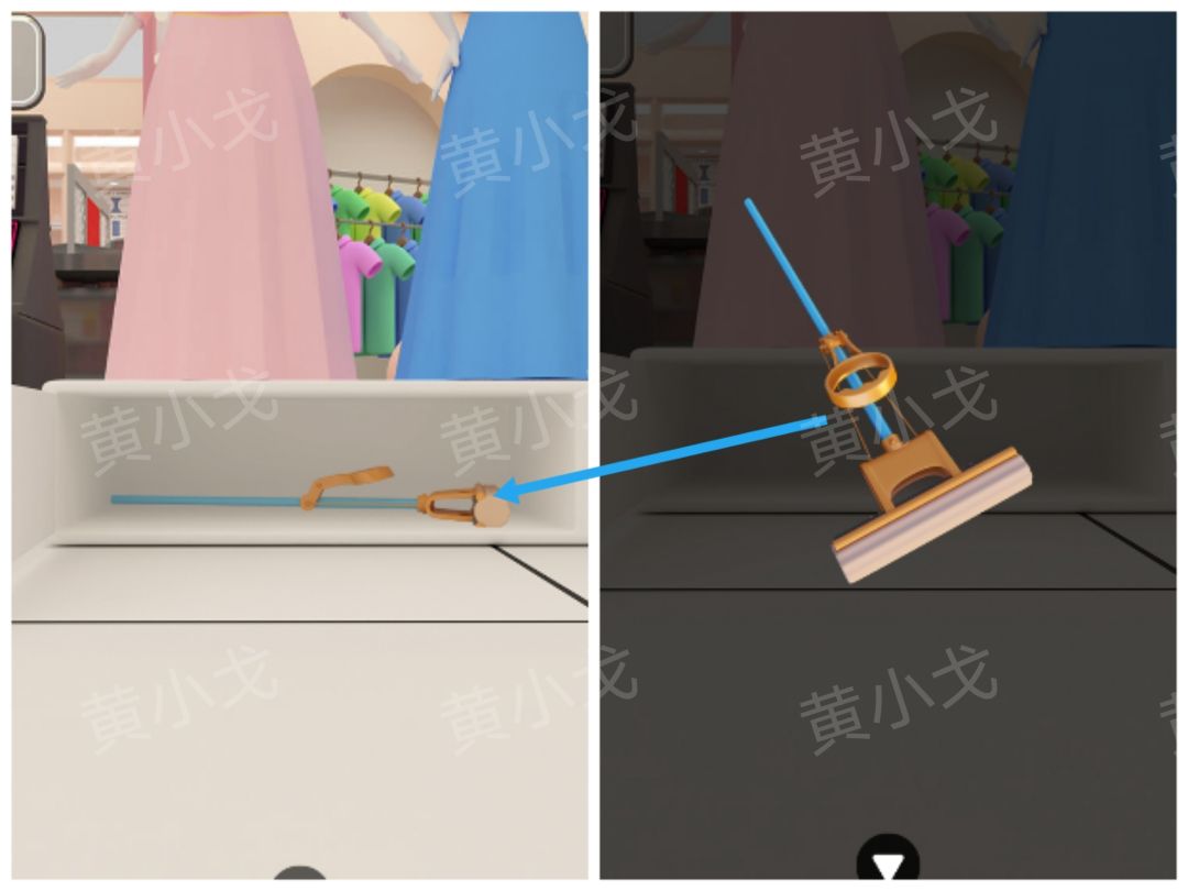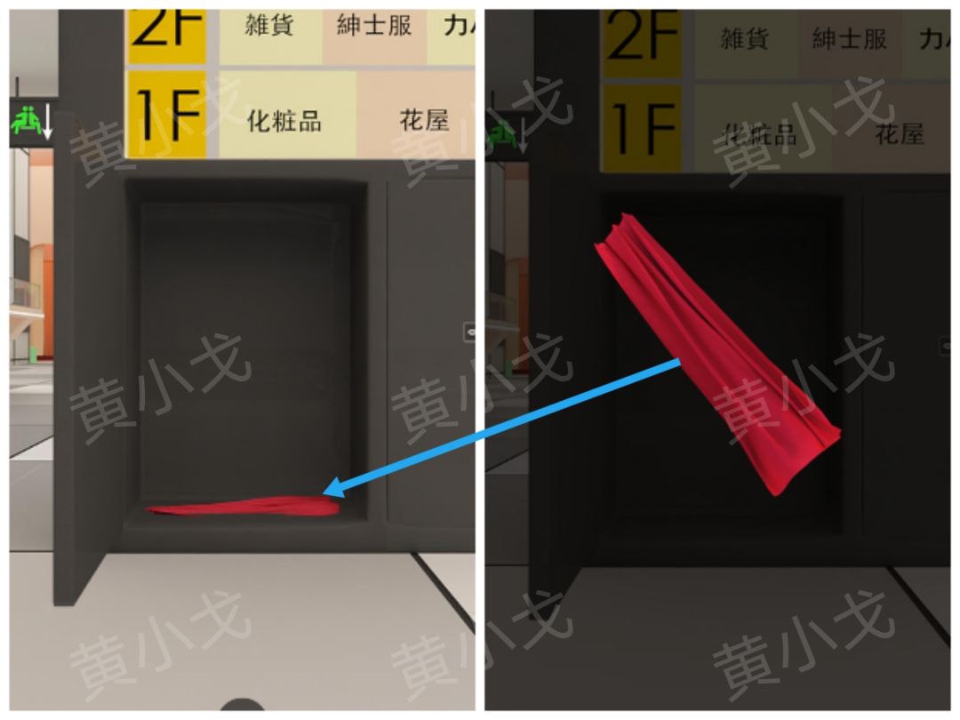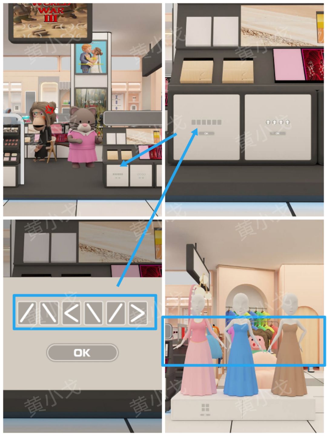 9.点击彩妆店柜台左侧柜子上的密码锁,根据假人模特的手,调整密码锁