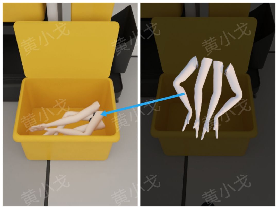 6.拿【假肢】给小猪;小猪给假人模特装上【假肢】,观察假人的手