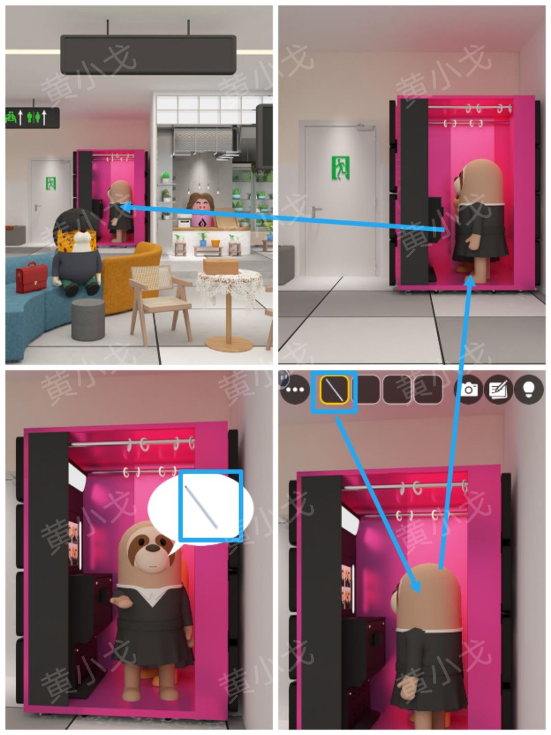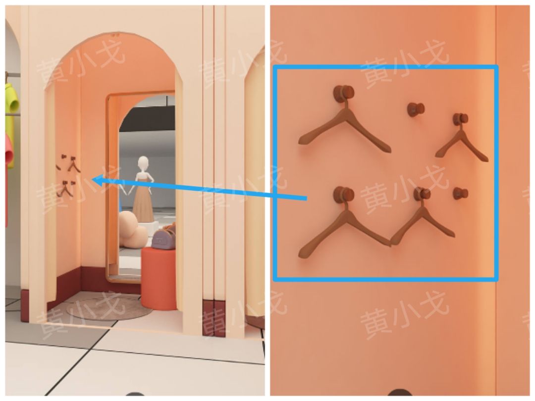 20.点击小鹿后面的柜子左侧柜门上的密码锁,根据[彩妆区]试衣间里的衣架线索,调整密码锁