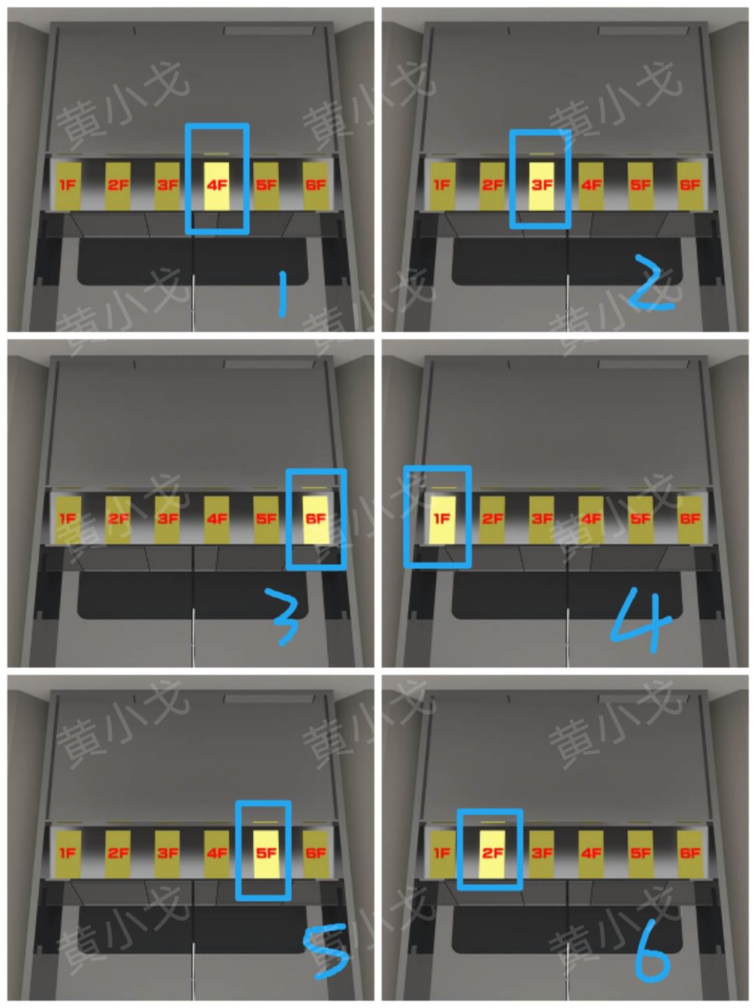 3.点击电梯,观察楼层按钮闪烁顺序