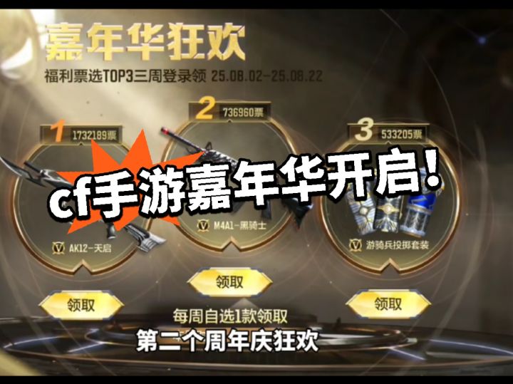 cf手游一年一度的火线嘉年华狂欢节终于来了! 可以说是有史以来最豪华的一次10多把英雄武器免费送!