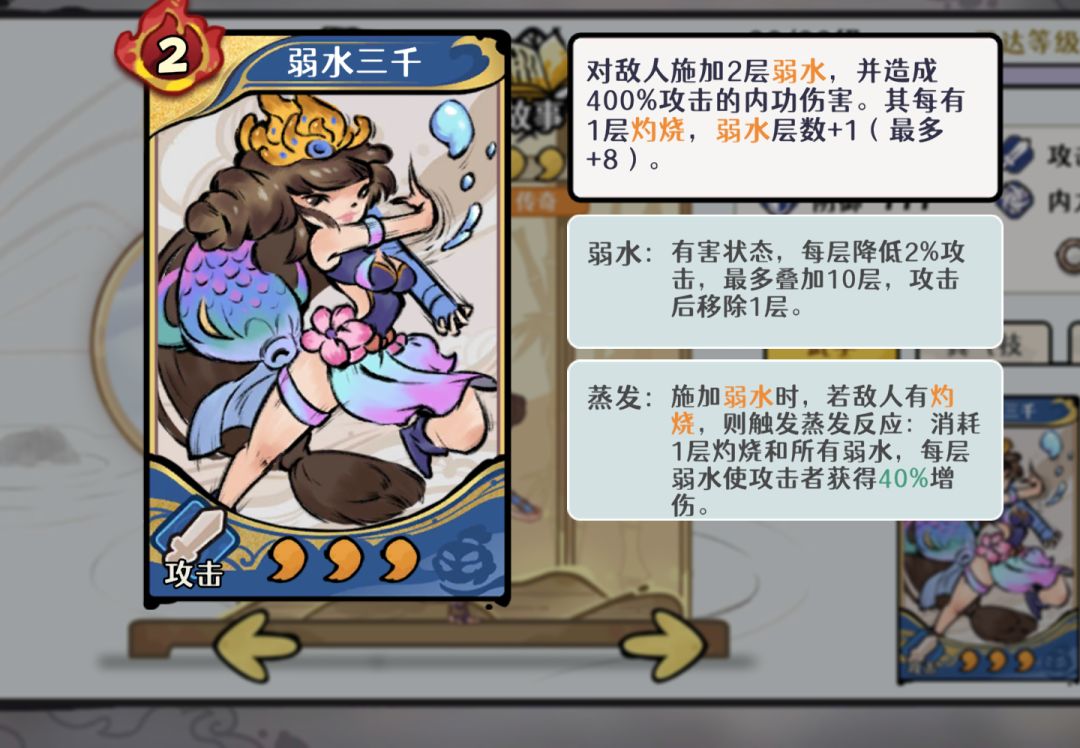可以看到鱼妹的满蒸发倍率是400*5=2000%,然后考虑到绝情神兵,洗牌一次时平均倍率为3000%,洗牌两次时平均倍率为4000%。(幻境时有多种buff,可带多牌,乐观估计平均倍率能达4500%)