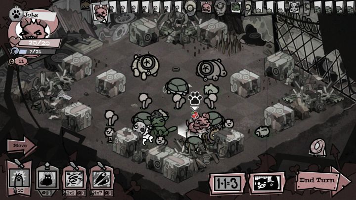 带领四只猫踏上冒险,像以撒一样通过不同的章节,击败不同的boss。和以撒不同的是,在你击败boss后可以选择回家,不前往下一个关卡,并把道具也一起带回家,带回去的道具可以在下一次冒险中使用。