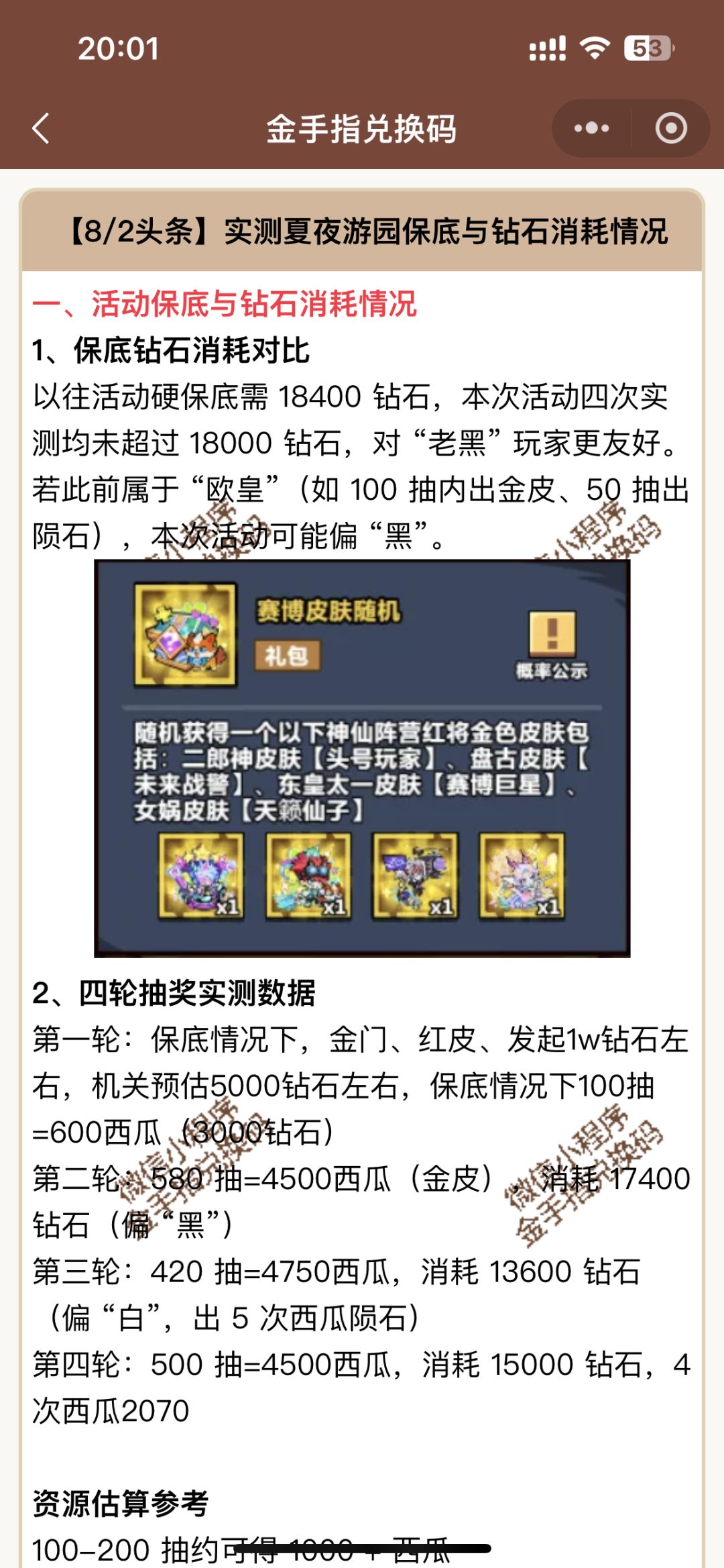 妖怪金手指实测夏夜游园钻石消耗保底所需