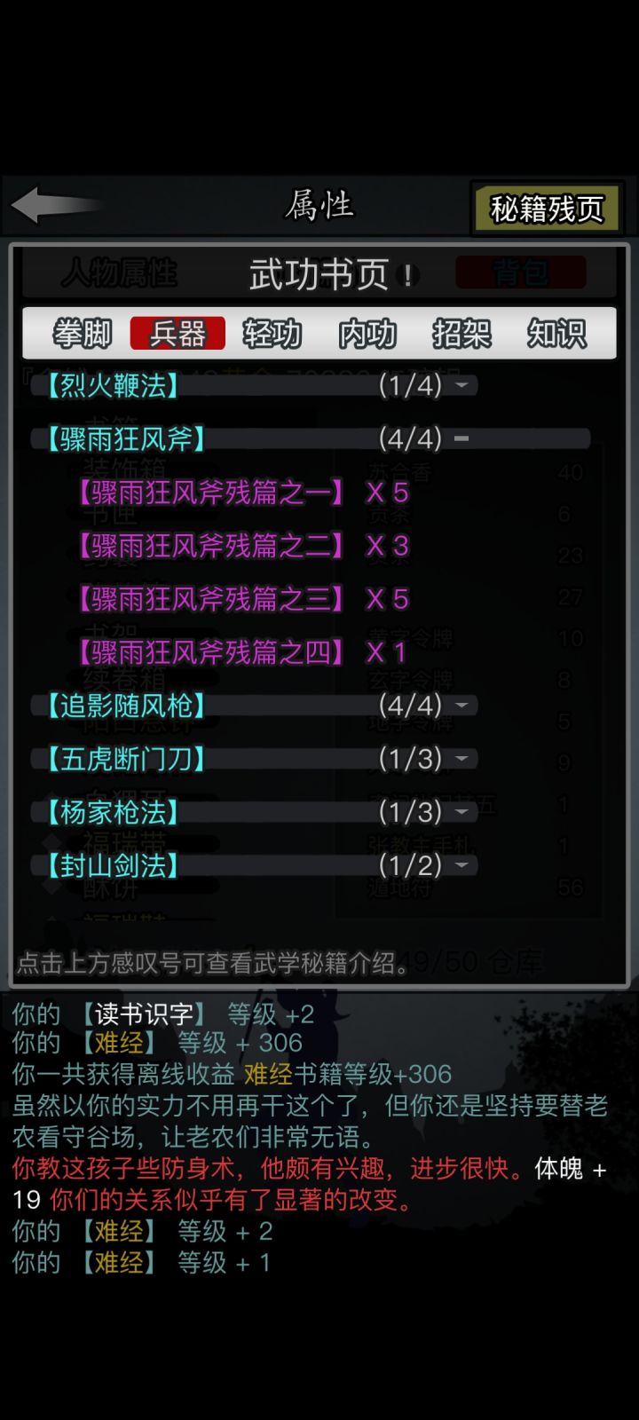 什么?不知道学习条件是什么?点击属性—点击江湖属性—点击图鉴—点击翻阅图鉴—点击斧类武学—点击骤雨狂风斧—点击暴雨骤落,即可看到学习条件