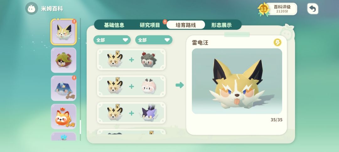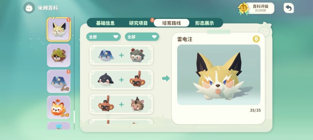 剩下两个米姆培育路线,还有其他的是领主和闪光米姆,闪光米姆运气好就可以约会几次得到。主要是我运气太不好,只出了一个。