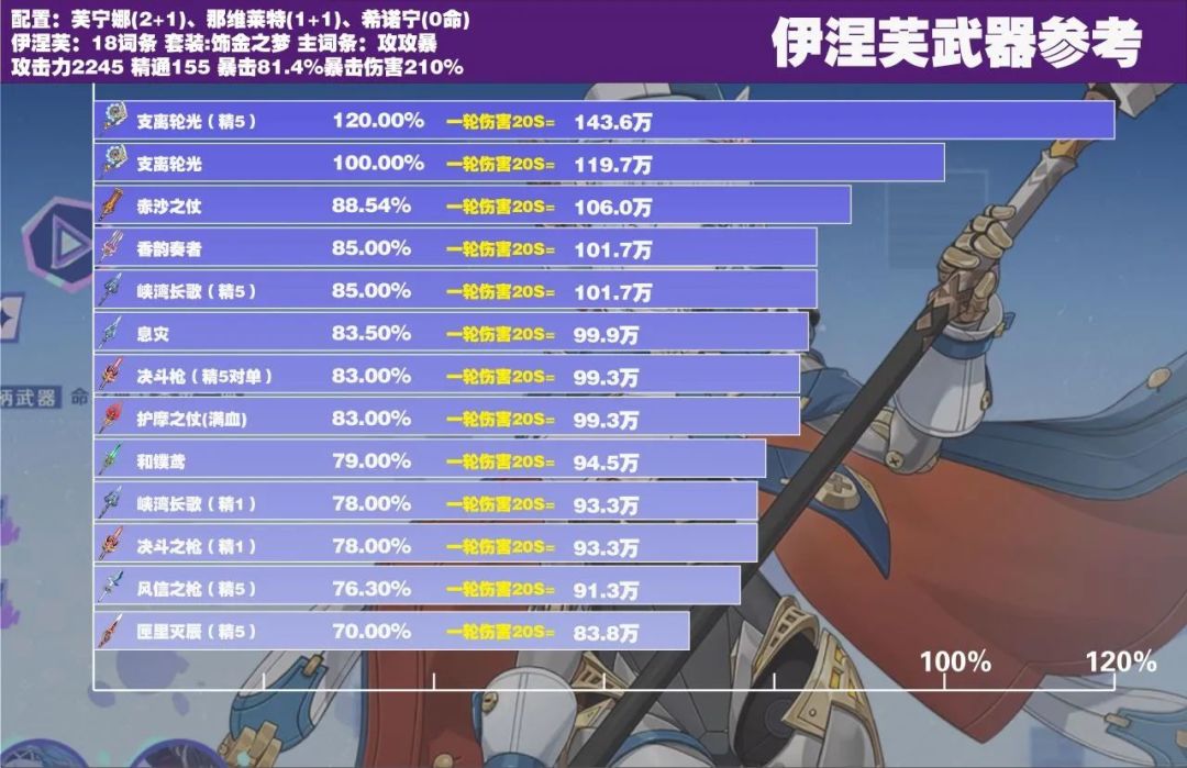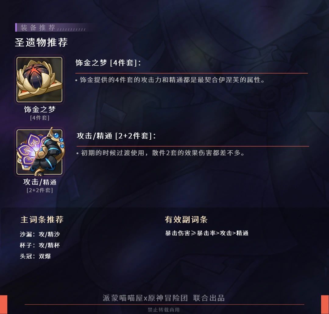 固有天赋2效果:释放元素爆发会为前台和伊涅芙自己提供伊涅芙6%攻击力的精通作用:增加前台和自己的精通
