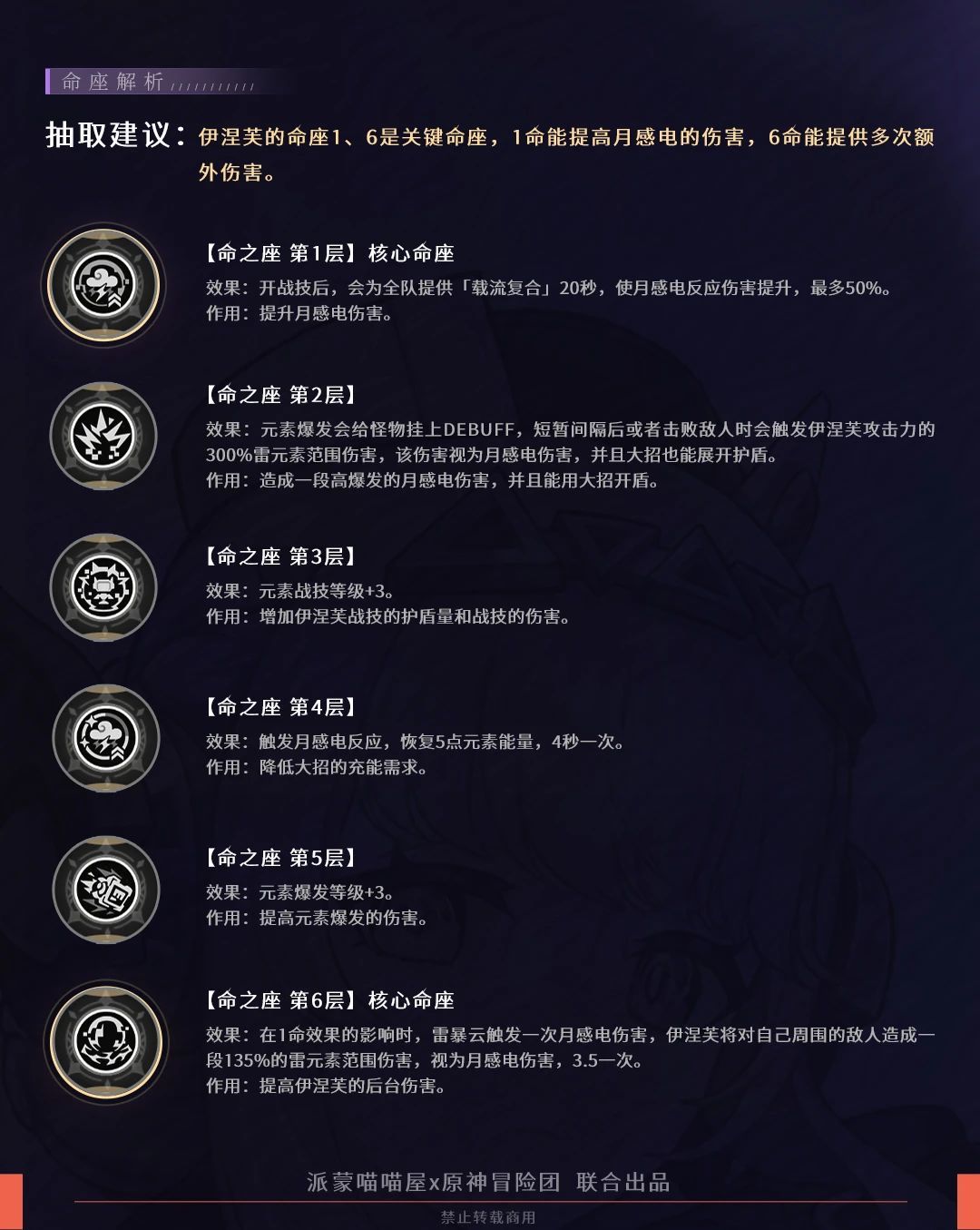 6命处于一命状态下时,月感电的雷暴雨攻击敌人会造成基于伊涅芙攻击力的额外月感电伤害