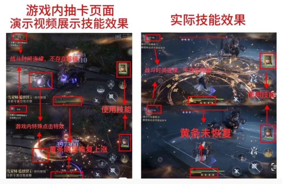 上海市杨浦区企业上海叠纸互娱网络科技有限公司旗下游戏【恋与深空】虚假宣传诱导消费,侵犯消费者权益。7月25日该游戏上架限时抽卡活动,包括我本人在内的大量消费者相信官方在游戏内发布的宣传片(游戏内外宣传片里均无任何免责声明,无“仅供参考”的标注字样),为该游戏充值抽取游戏卡[夜誓]以获取游戏商品战斗搭档[暗蚀国王],当天恋与深空登顶中国IOS营收榜第一(预估流水金额超亿元)。随后大量玩家实际使用并多次测试,发现购买获取的商品[暗蚀国王]战斗技能效果与宣传片里严重不符。本人及大量玩家已向游戏官方客服沟通6天未果,财产与精神都受到了严重损失。
