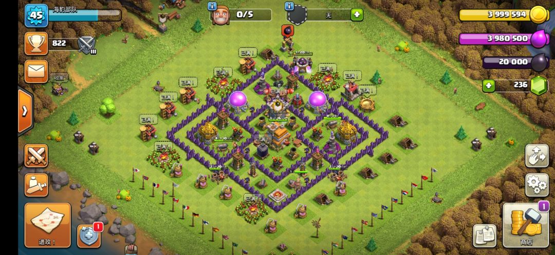 此号创立于国庆节,刚开始可以小氪一下把五个工人放出来也就几十块而已,然后开始直接速本到七!当然了科技不能停!哥布林,飞龙,闪电优先升级 图一就是七本最合适的图 平时都是哥布林偷资源 八本之前都是带的全雷电!雷电主要是击打迫机炮跟法师塔为主!当然了打资源也得看图 有些不好打就下一个 不管他多资源还是少资源。主要是为了减少造兵时长跟合理化! 七本的单位有200个哥布林 造兵时长也就20来分钟 那么打资源的时候是随缘的,有时候不用下雷电也可以抢有时候就单独雷电也可以抢资源 有时候几个兵就能拿下很多资源,具体遇到的看你个人应对。还有就是得看阵 有些资源是在生产器有些是在仓库里这些都是要分辨的,如果仓库没资源都在生产器但是又不好下手 那么下几个雷电击打下生产器走人就是了 所以还是看自己应变能力 七本的时候按照这样的打法两拨兵400个 可以做到连续抢大概40分钟 就满双仓库了 平均下来都是遇到双资源20万以上才打 那么下图是我八本的时候 打的资源!