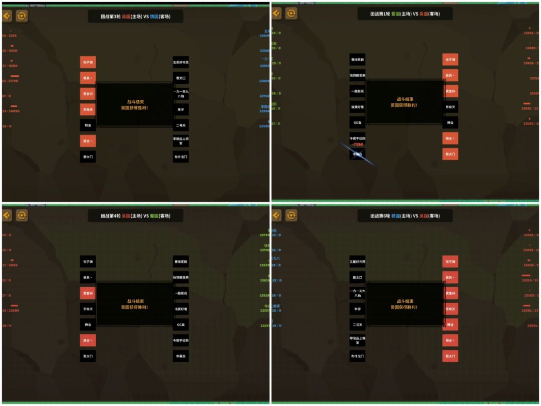 本次联赛最高单次攻击出现在第一轮吴将张子海(7490),如果按承受六轮攻击来算,理论上最合理的体力数值应为44940附近,而在此体力附近的吴将周全丶(44000)在每轮比赛中都稳稳成为最后的幸存者(图四);