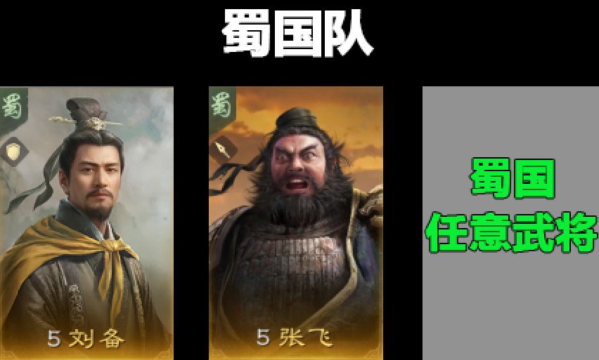 氪佬选择桃园队,成员包含刘备、张飞、关羽,或者刘备加张飞再上任意蜀国输出