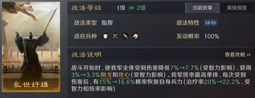 七到九级地也能用,我们需要主动去找兵刃队伍打,才能让这个战法收益最大化。