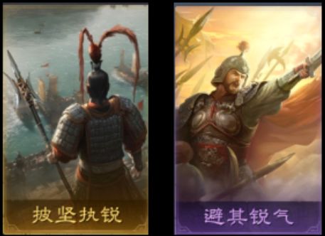 前排比较重要的两个战法,一个是金色战法披坚执锐,一个是紫色战法避其锐气。