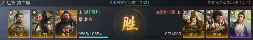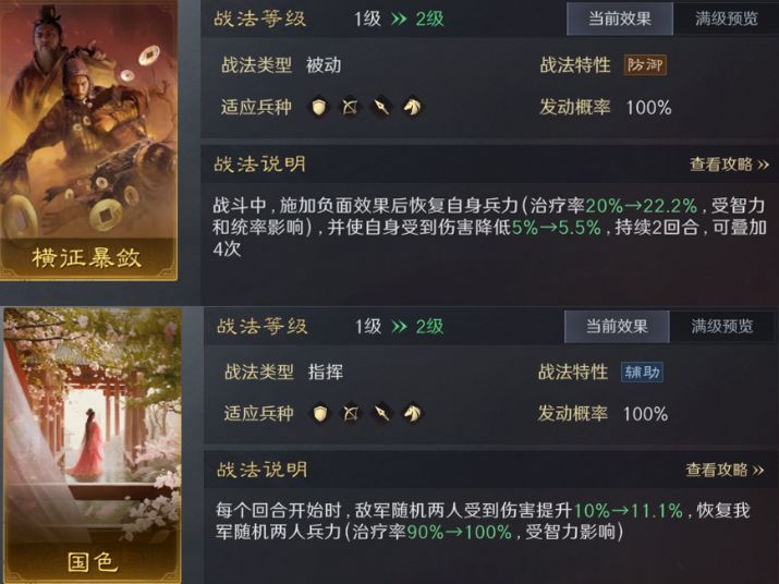 如果恰巧拥有曹操和刘备这两个前排,完美适配避其锐气加披坚执锐这套战法组合。
