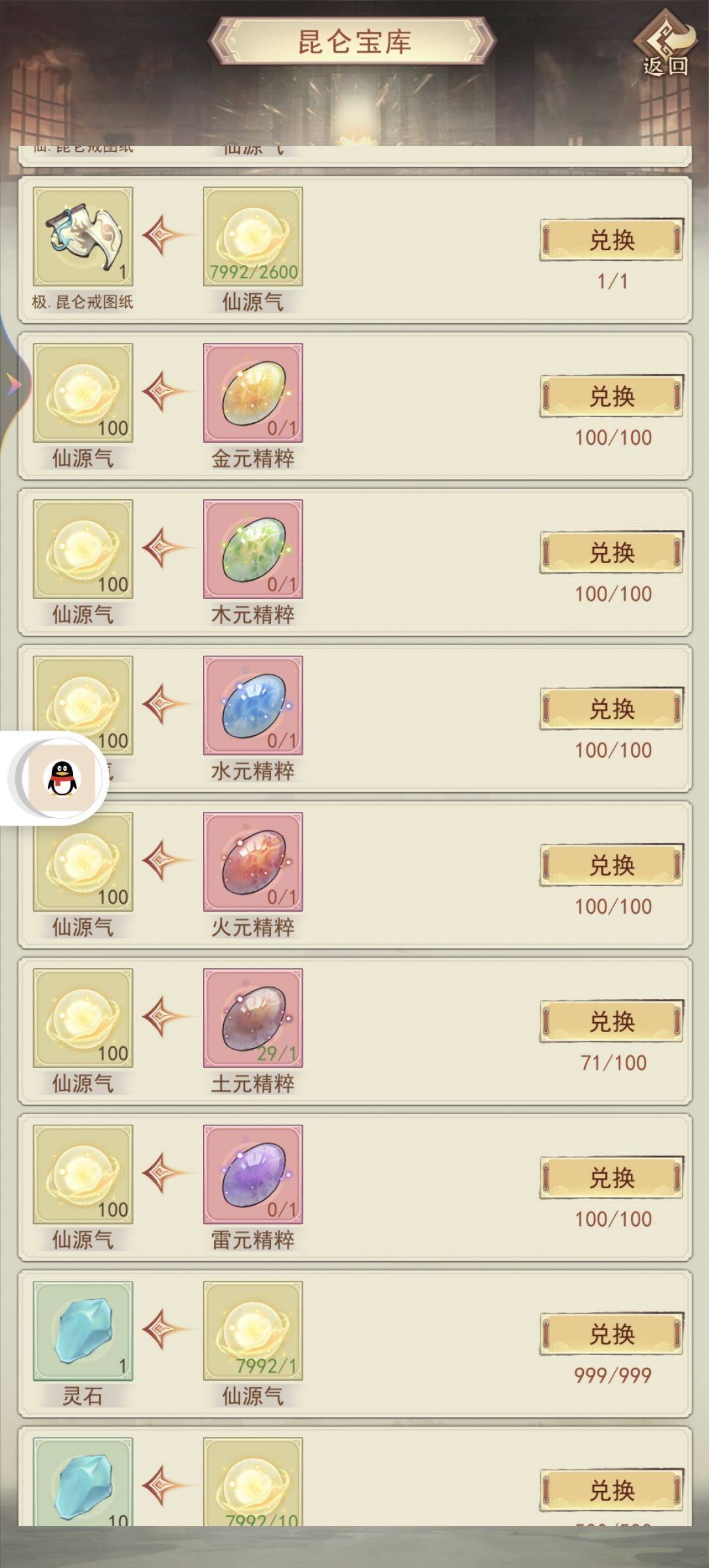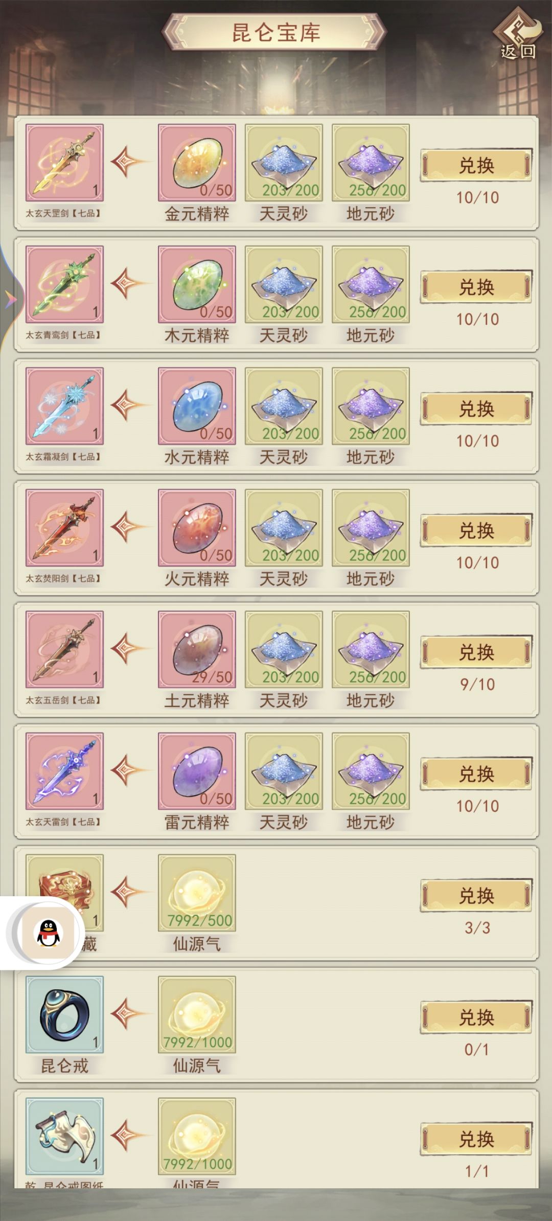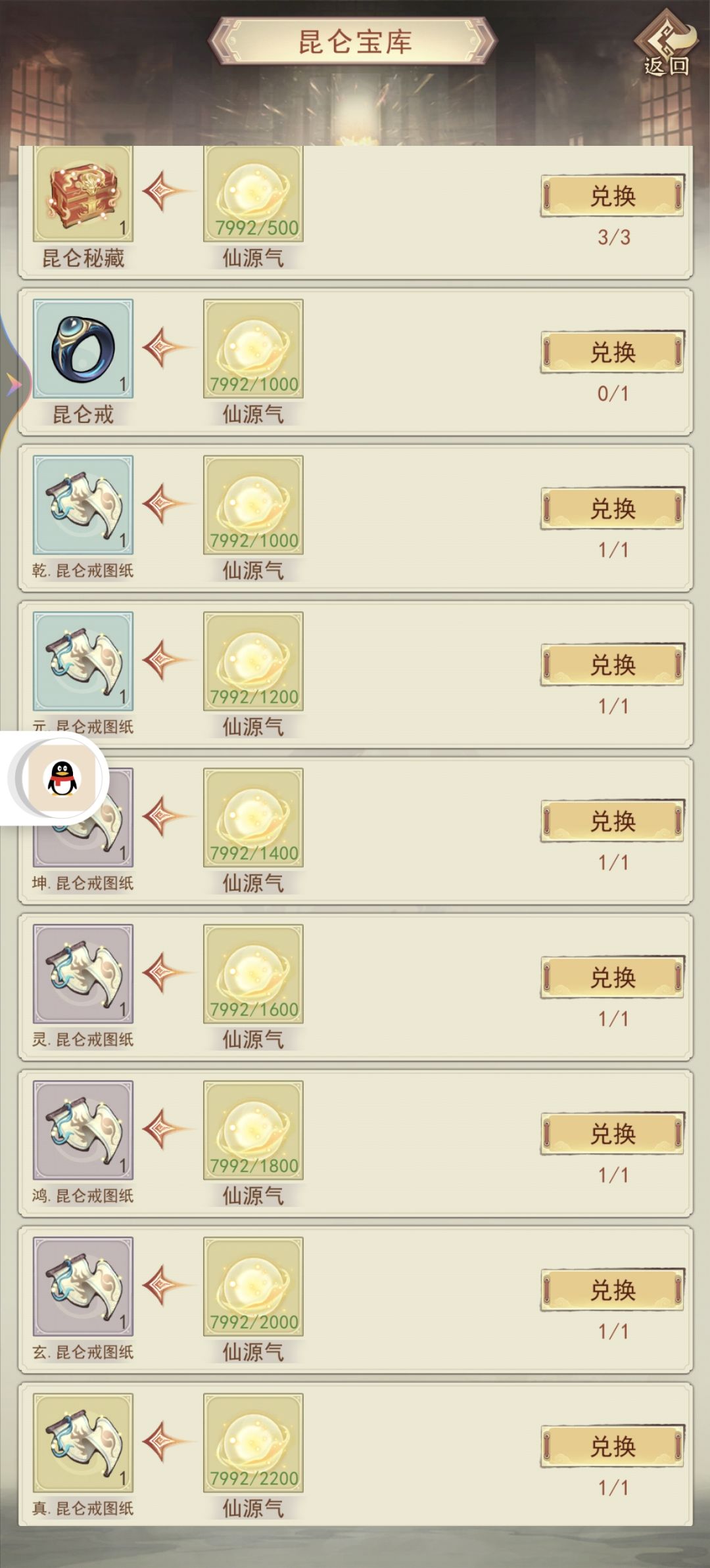 3.仙气前期需要先换戒指,再堆秘术,图纸是最后换的,红武够了就优先兑换。