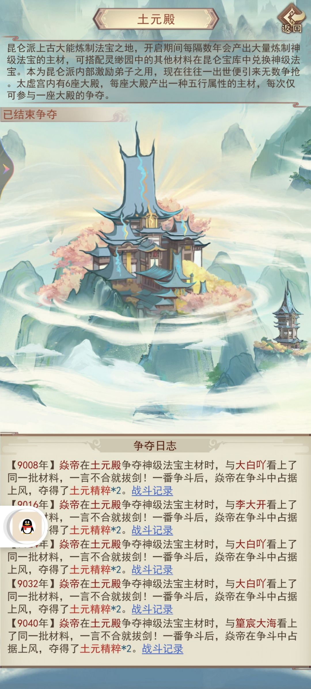 【玩法介绍】:获取兑换红武的核心材料,需要与同一个仙殿的玩家进行五场随机PK,胜者两颗,败者一颗。