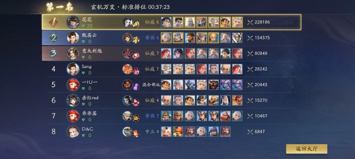 仙庭:变卦、纯黑和纯白。仙庭前期战力很高可以稳定过渡。变卦上限高,但是需要变卦手段,需要依靠大量组件或者经济;纯黑上限也不错,高星外挂寻踪后不吃经济;纯白也可以玩,但是很吃经济,自身提供经济有次数限制(附一张刚打的纯白)。