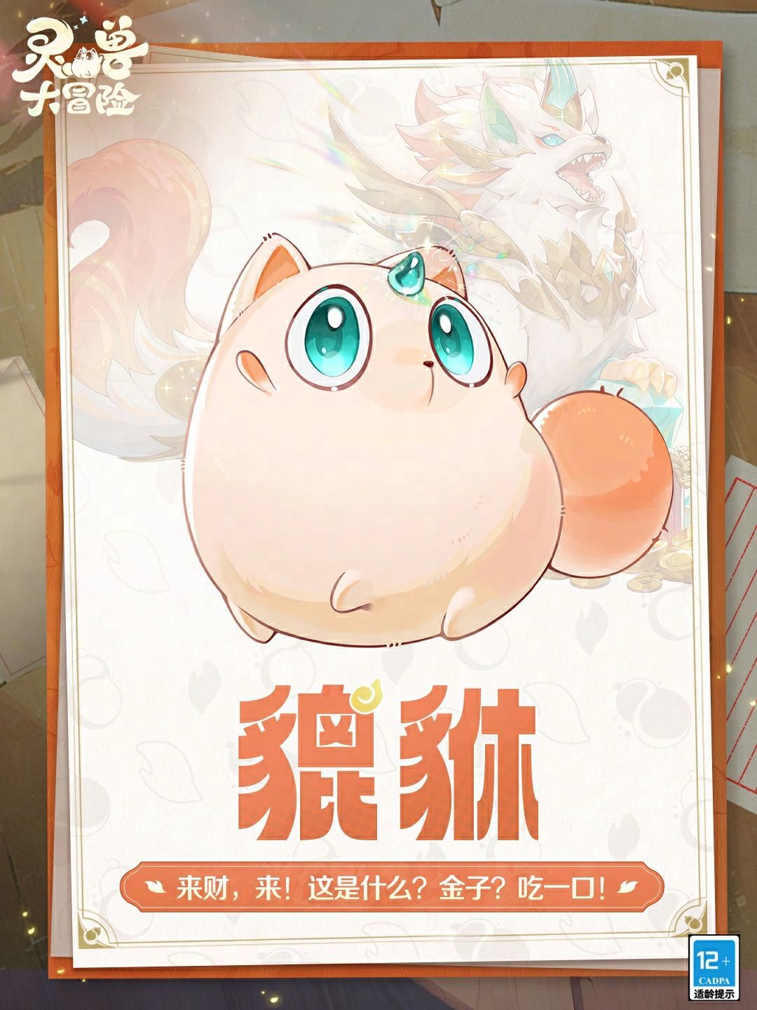 如果你也想拥有一只赛博萌宠,不妨带上葫芦,亲自来捉!游戏内的大部分灵兽都可以使用葫芦一键收服,灵兽貔貅在对应主线剧情完成后也会免费赠送给玩家,让大家都能拥有一只自己的貔卡貅! 用嘴鉴别金银财宝的美食家,灵兽师身边胃口最好的伙伴。