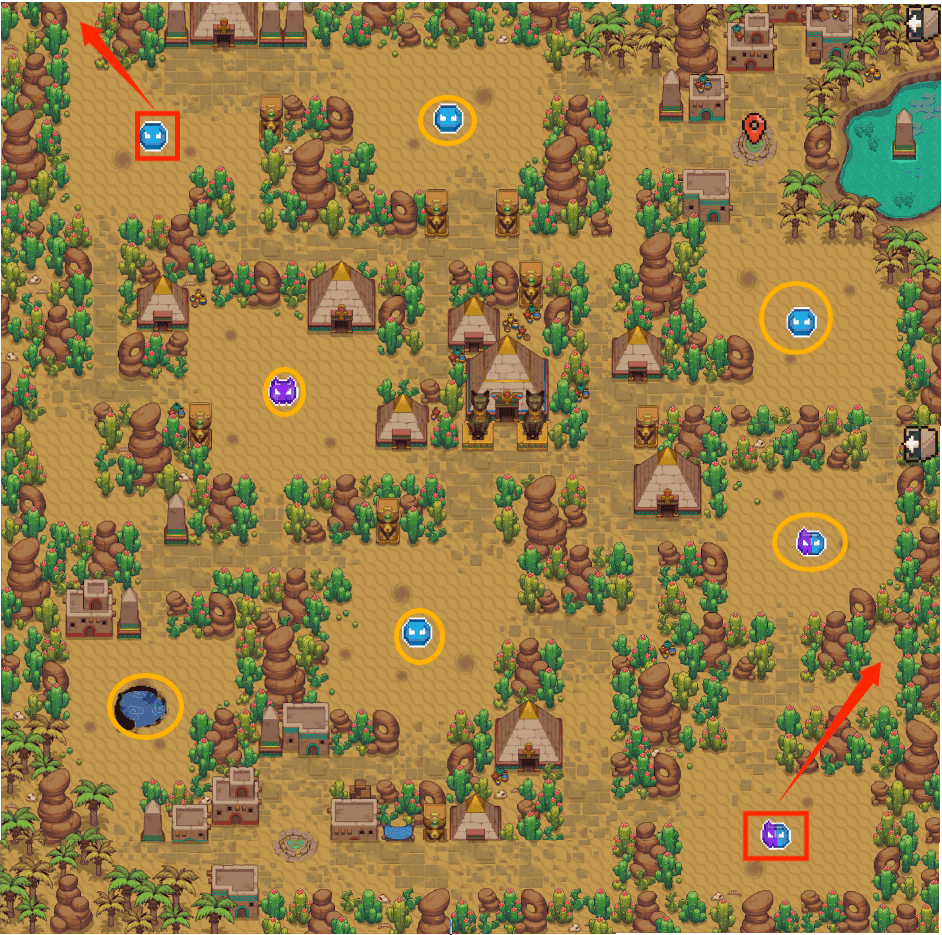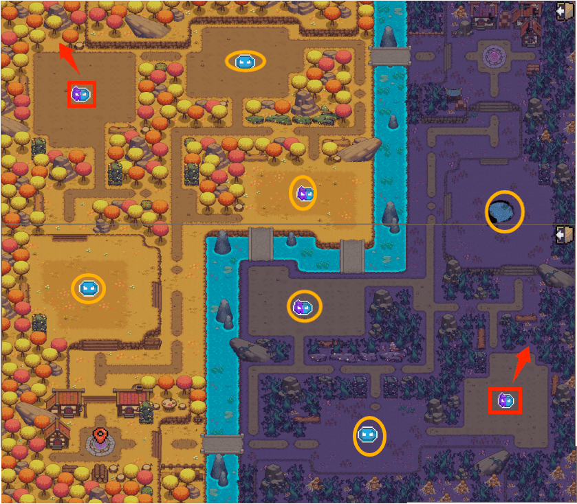 圆圈处为本地图 特殊事件可能刷新点位(按理来说应该是除了隐藏房间刷怪点,其他刷怪点都有可能刷新特殊事件,但我有几张地图刷一天都没见过某个点位刷特殊事件)