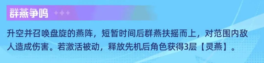 接着白沉香的先机技能可以给敌方造成伤害且获得3层“灵燕”,是一个较为重要的获取灵燕的手段。