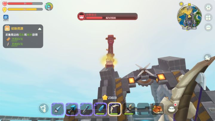 今天刚刚把铁穹巨像打完,因为铁穹舰队旁边刚好有沙漠,而打完的时候又刚好碰上沙尘暴天气,天时地利人和,沙原领主就出现在了200多高度的铁穹战舰上(为什么说它喜欢乱跑呢?因为我记得上一次它是跑到雨林神殿里去了)