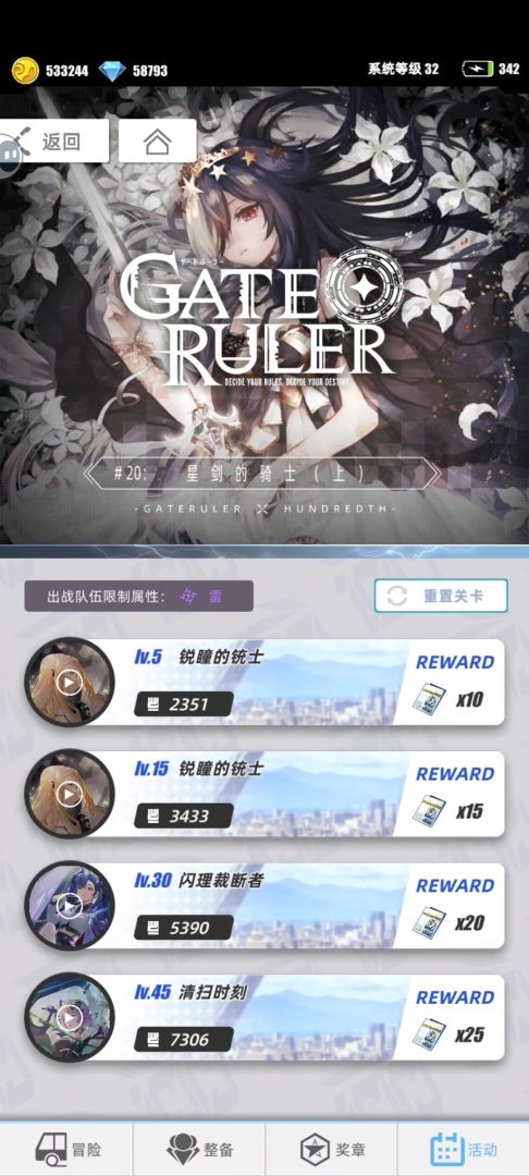 勋章冰雷光,本队核心天赋为0,这种难度没天赋也随便打,冷落雪适当升级提高输出。菲琳去奇点排查兑换锻造,不要开第三天赋。冷落雪tap活动免费拿,参照论坛主页的各种刷屏贴